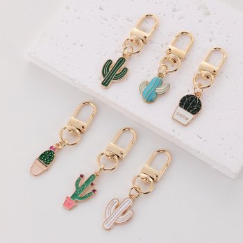 6pcs Cute Alloy Cactus Keychain Set